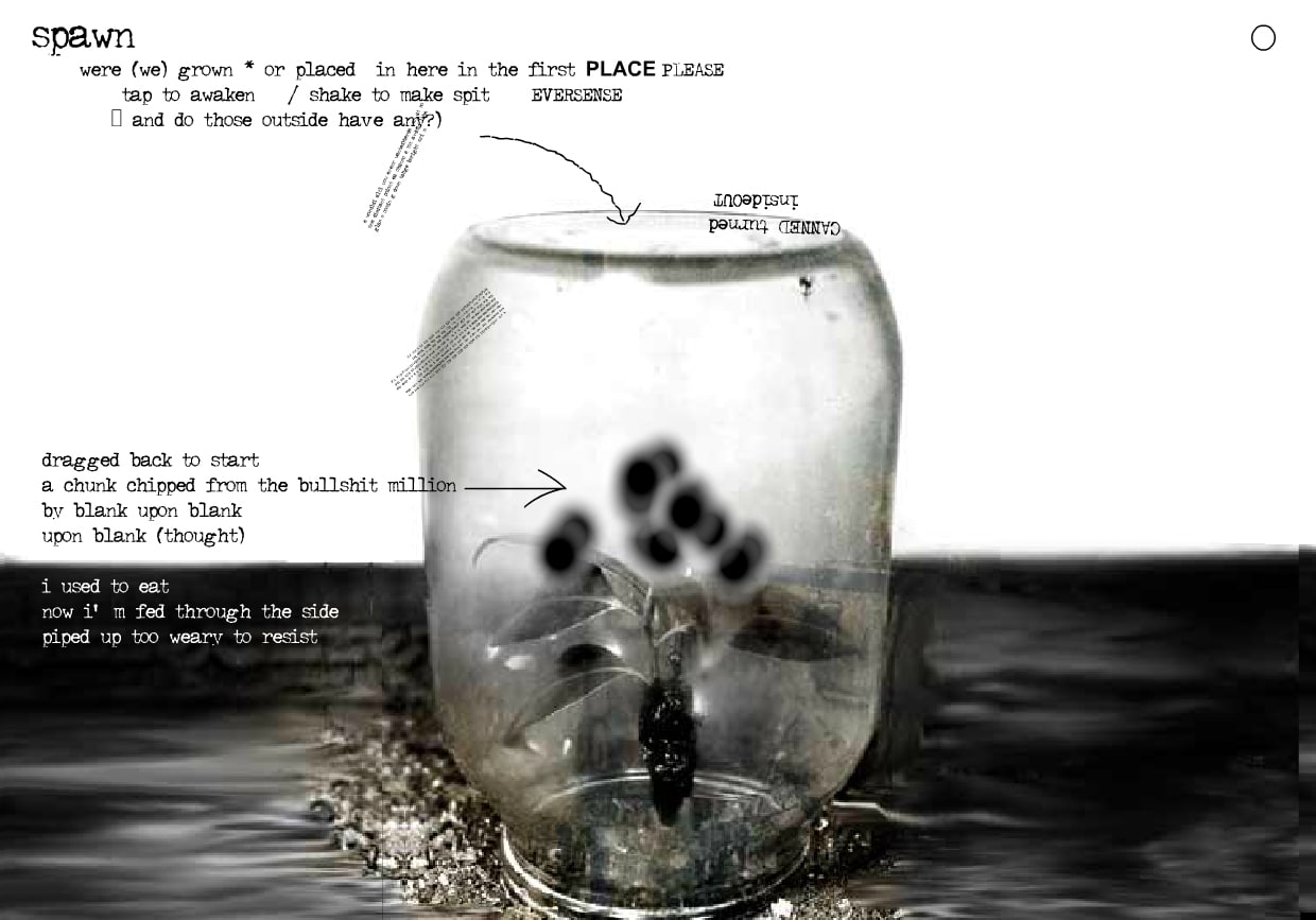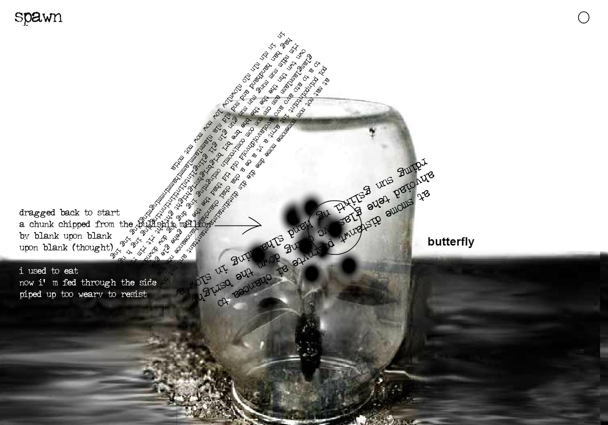 Created in 2002 by Andy Campbell, Spawn is a mouse-responsive 'liquid poem' that was featured in the online journal 'Poems that Go'. Spawn features digitally manipulated and randomly generated texts inspired by the perceived lack of recognition and 'publishing outlets' for the type of experimental digital literary work being produced by Dreaming Methods and other digital artists/writers at the time. It was originally designed and written using Adobe Flash and contains some quality/configuration preferences that no longer work in modern browsers.