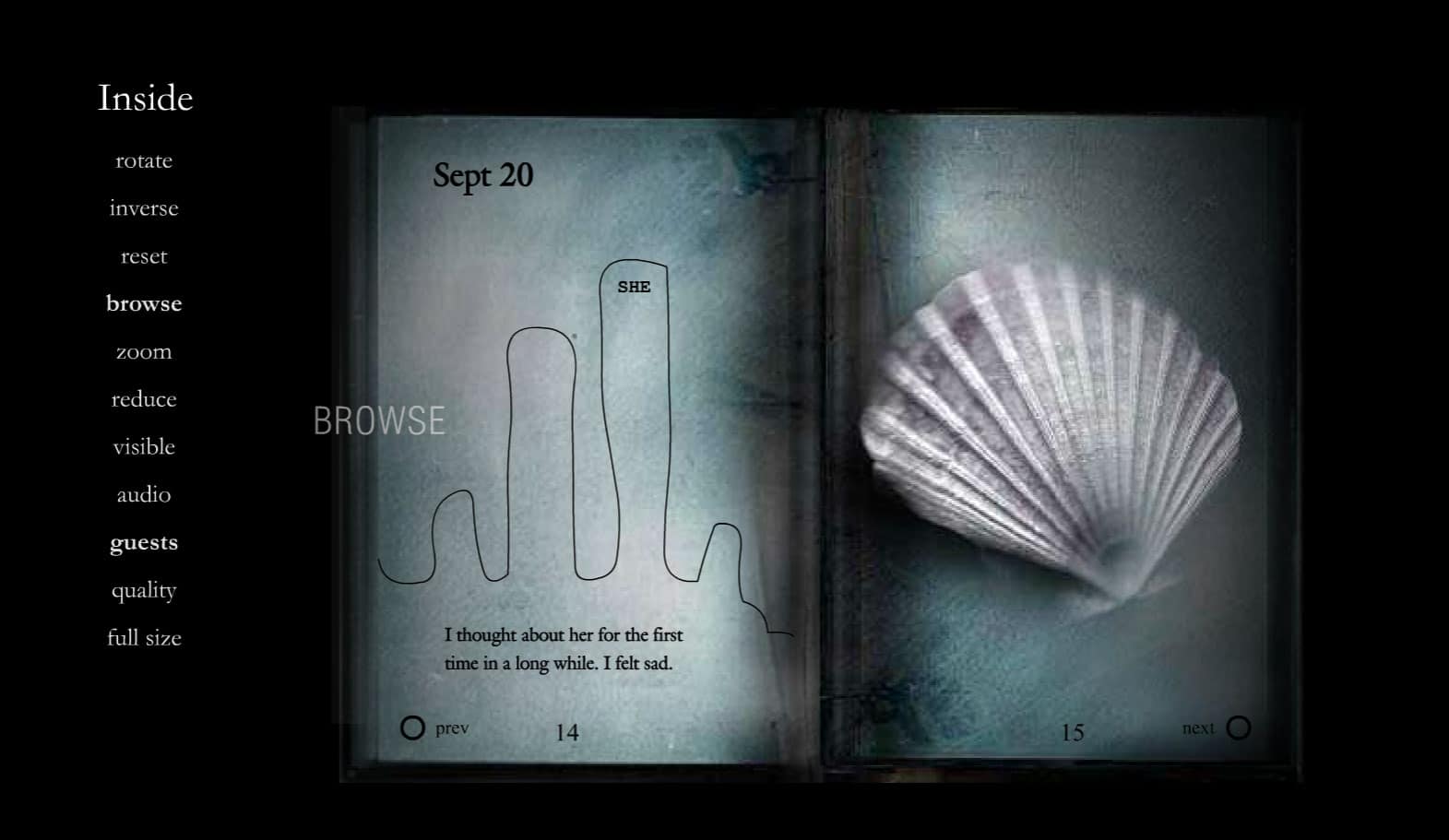 Launched at the Sorbonne's first conference on Writing and the Internet, Inside was published by the online journal bleuOrange and translated into French by Sandra Dube. * Please note that the French version is currently unstable.